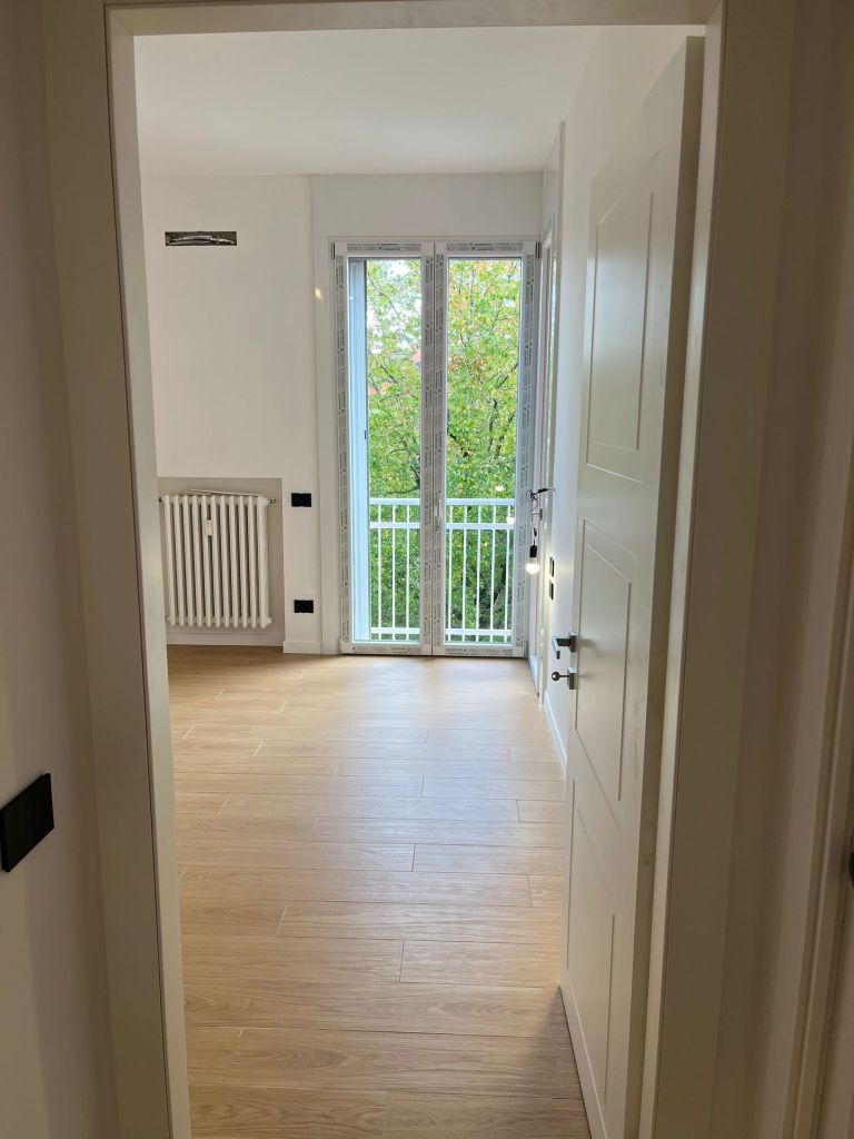 Ci siamo occupati dell’intero progetto di ristrutturazione di questo ampio 4 locali ad uso abitativo, situato in Via Moro a San Donato Milanese. L’immobile era ben conservato ma con una struttura ed una organizzazione degli spazi in stile anni ’70. Con il cliente abbiamo scelto di dedicare ampio spazio alla zona living e alla zona cucina senza separare i due spazi con opere murarie. Subito adiacente all’ingresso abbiamo realizzato un ripostiglio capiente, chiuso da un pannello a muro che si apre a scorrimento, che nasconde anche il quadro elettrico principale. La zona living è ampia e luminosa e sarà occupata da un tavolo da pranzo, da un divano e da una parete attrezzata realizzata con pannelli fonoassorbenti in legno coordinato alla pavimentazione. La zona cucina, adiacende alla zona living, sarà composta da una cucina attrezzata e da un’isola sui cui sarà possibile anche pranzare. La zona notte è separata dalla zona living da una porta, che apre su un corridoio che porta a tre camere da letto, una con cabina armadio, e due bagni. Nel bagno padronale abbiamo installato anche la cromoterapia.