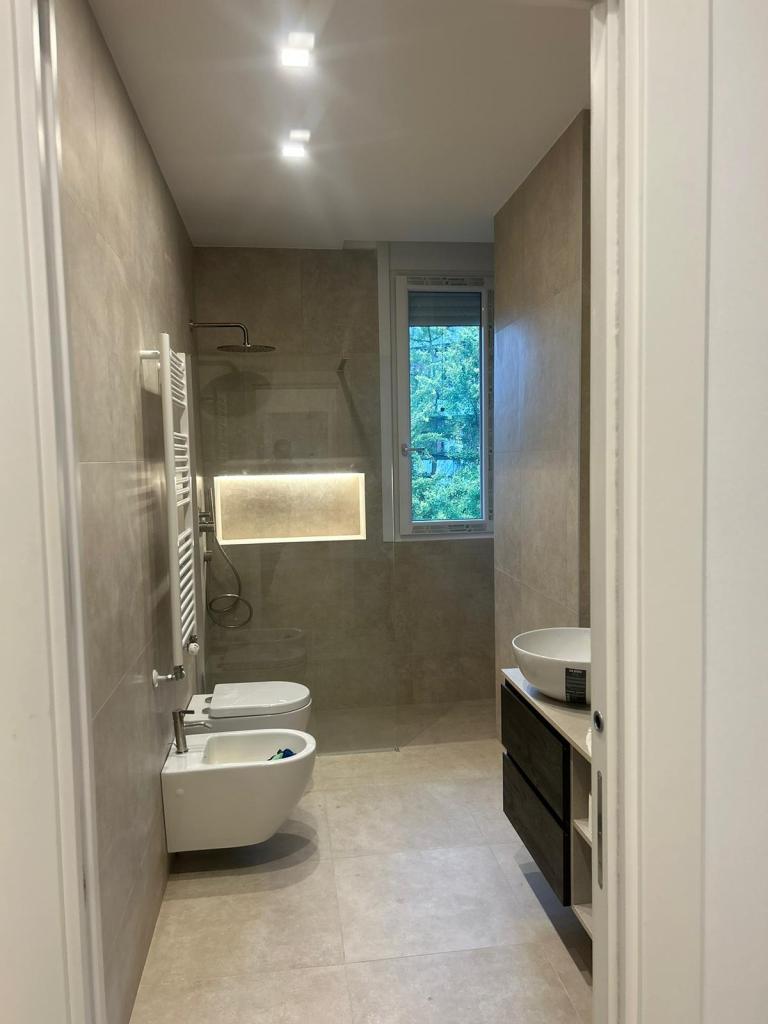 Lavori eseguiti: opere di demolizione e rimozione vecchi impianti, pavimenti e rivestimenti; opere di costruzione in muratura e cartongesso; rifacimento impianto idraulico; rifacimento impianto elettrico con domotica e controllo remoto di luci, tapparelle e sicurezza; verniciatura e imbiancatura; fornitura e posa sanitari; fornitura e posa illuminazione led; fornitura e posa pavimenti e rivestimenti; fornitura e posa infissi; opere di finitura.